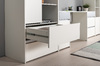 Отсутствие лицевой фурнитуры и открывание фасадов за край - это то не только интересное стилевое, но и эффективное функциональное решение. Так мебель занимает меньше места и можно проходить вплотную рядом с фасадом без риска зацепиться за ручку или травмироваться.