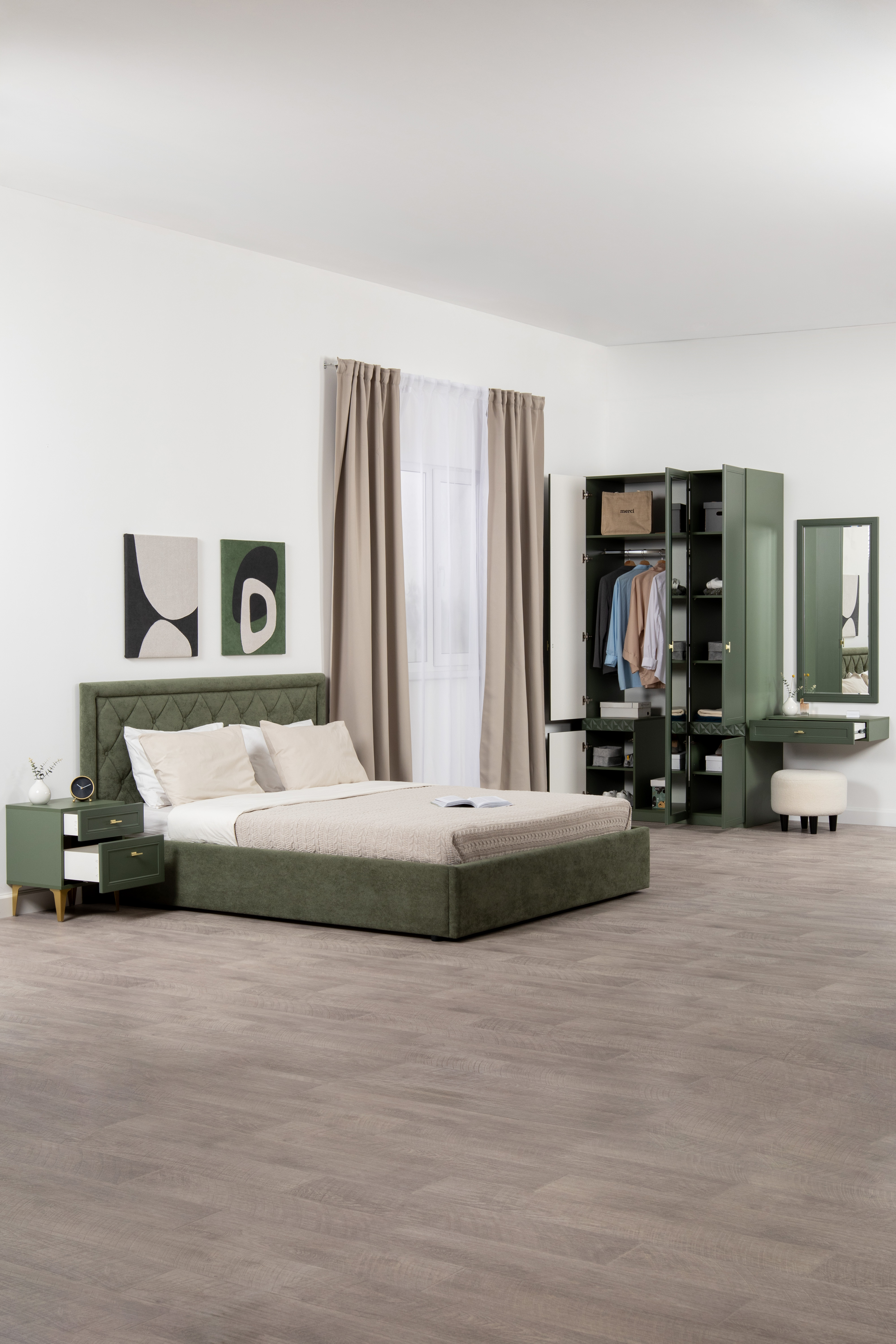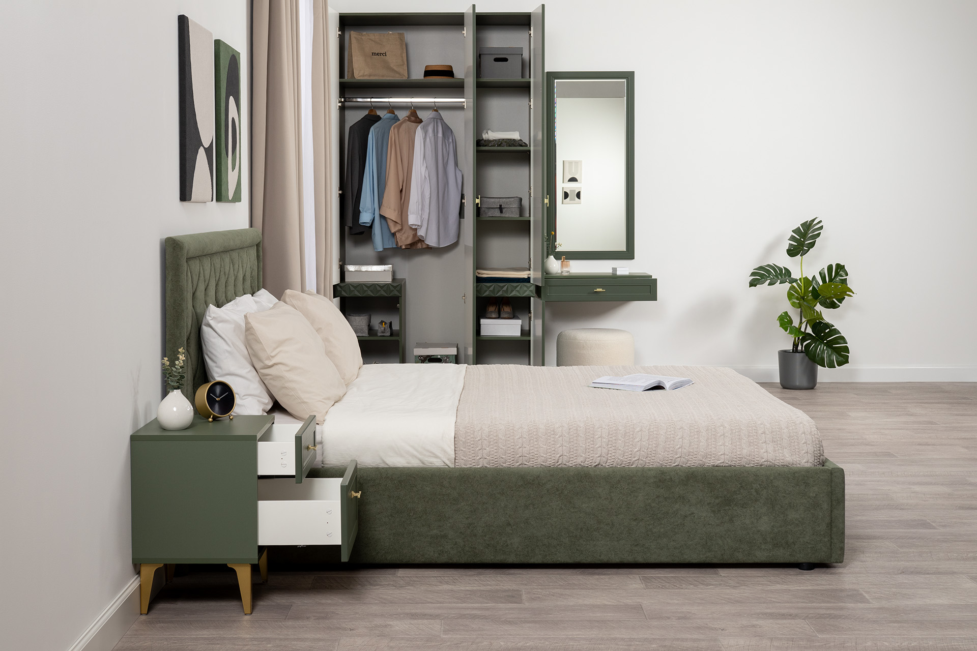 Тумба прикроватная Марион 16.14 дымчатый зеленый K521, олива шагрень AG 1050 ПВХ, белый PE шагрень