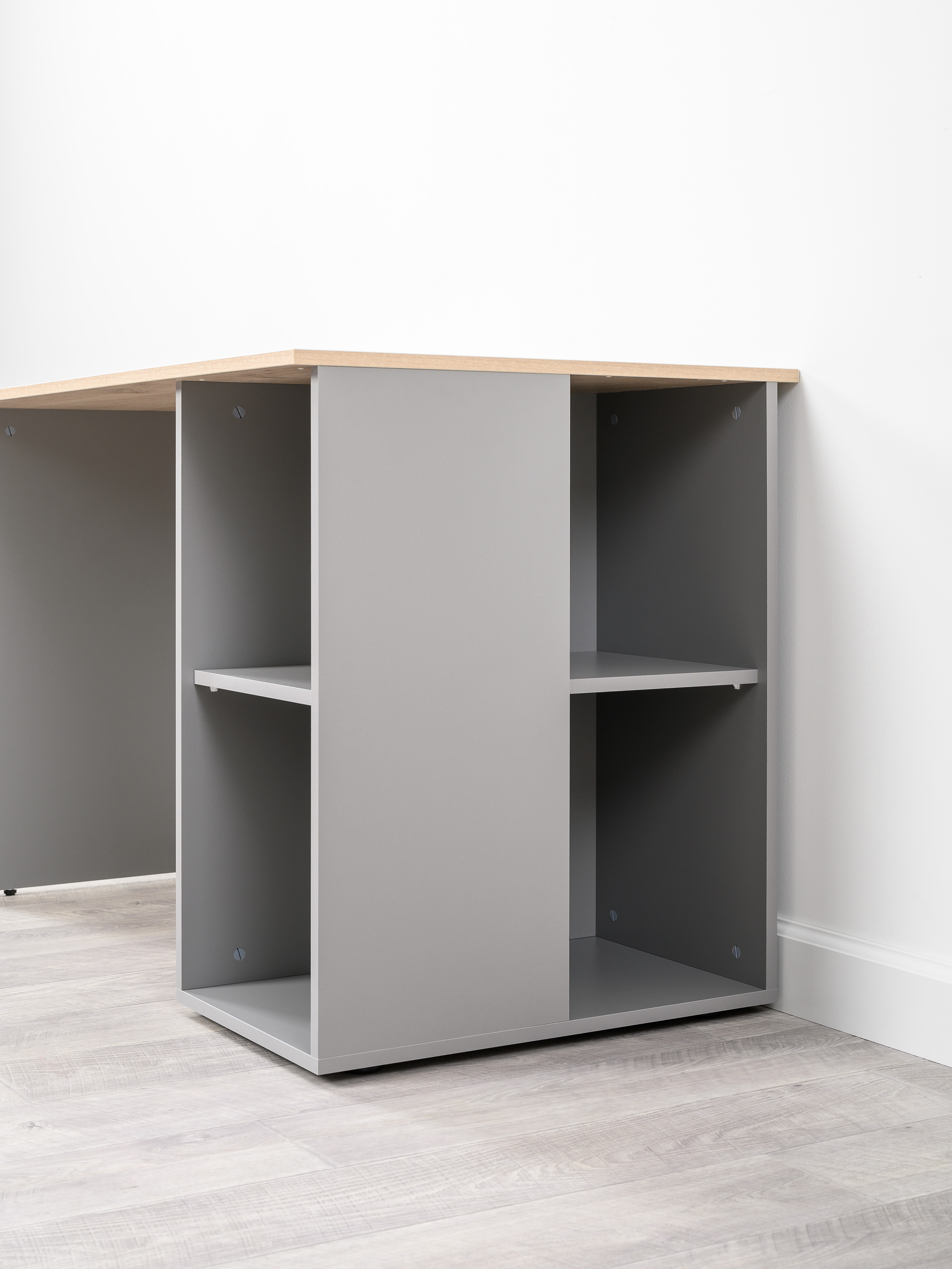 Торцевые полки можно собрать с наружной или внутренней стороны стола
