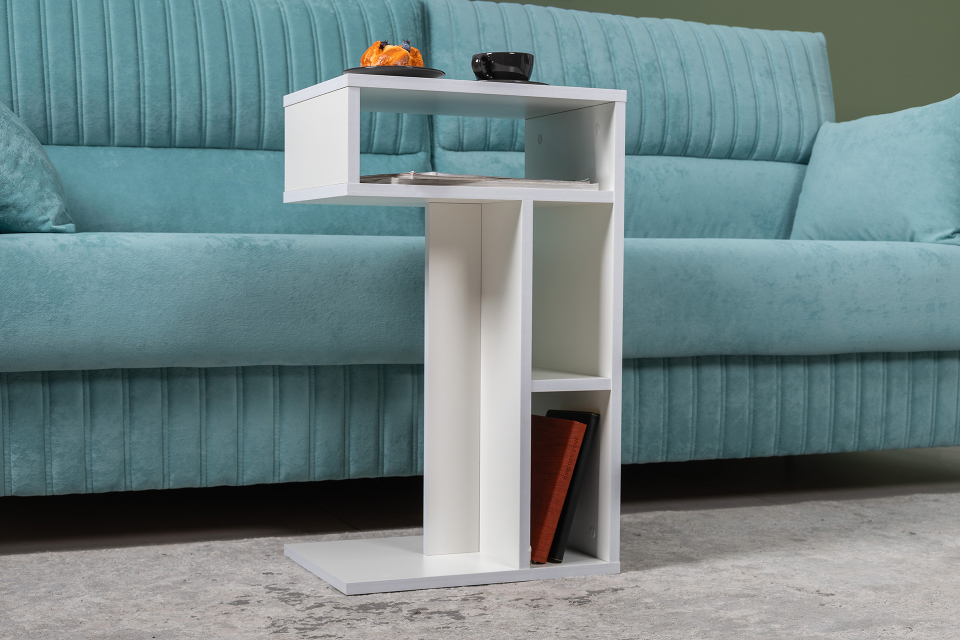 Стол журнальный, подставка Эйр 12.114 белый РЕ шагрень, вертикальная и горизонтальная установка