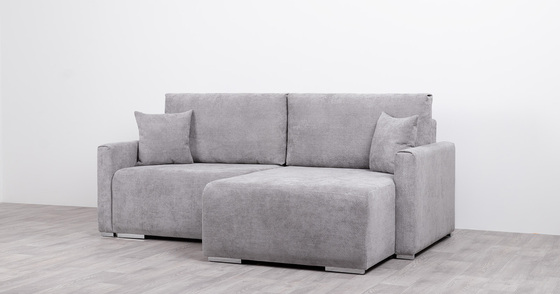 Тахта MIA левая рогожка Sherlock 932 серо-бежевый, кожзам Madrit 925 коричневый
