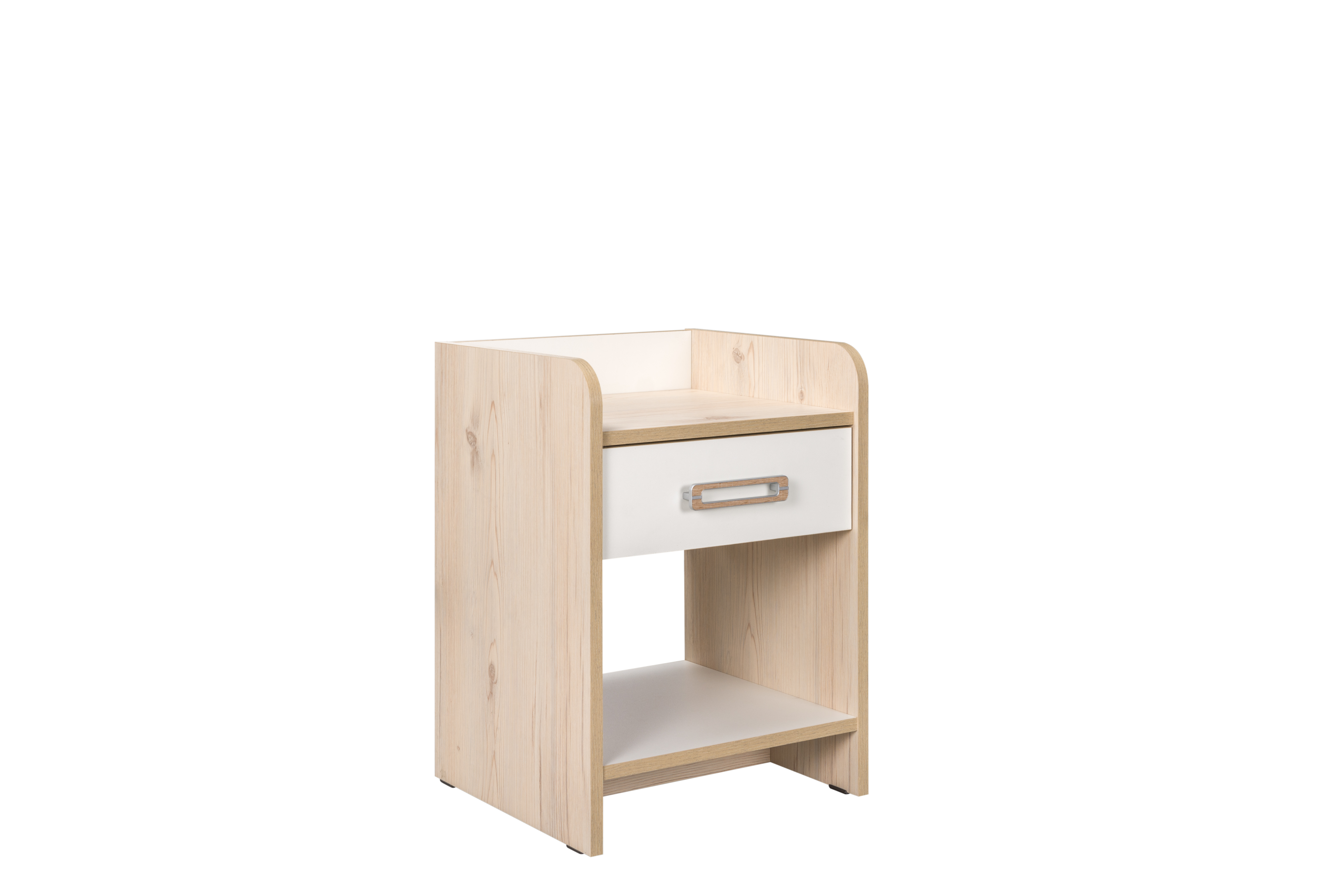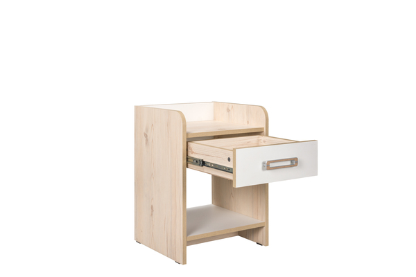 Безопасная тумба скругленными углами, где удобно поставить светильник или положить книгу. Имеется ящик для необходимых мелочей на бесшумной направляющей, полного открывания.