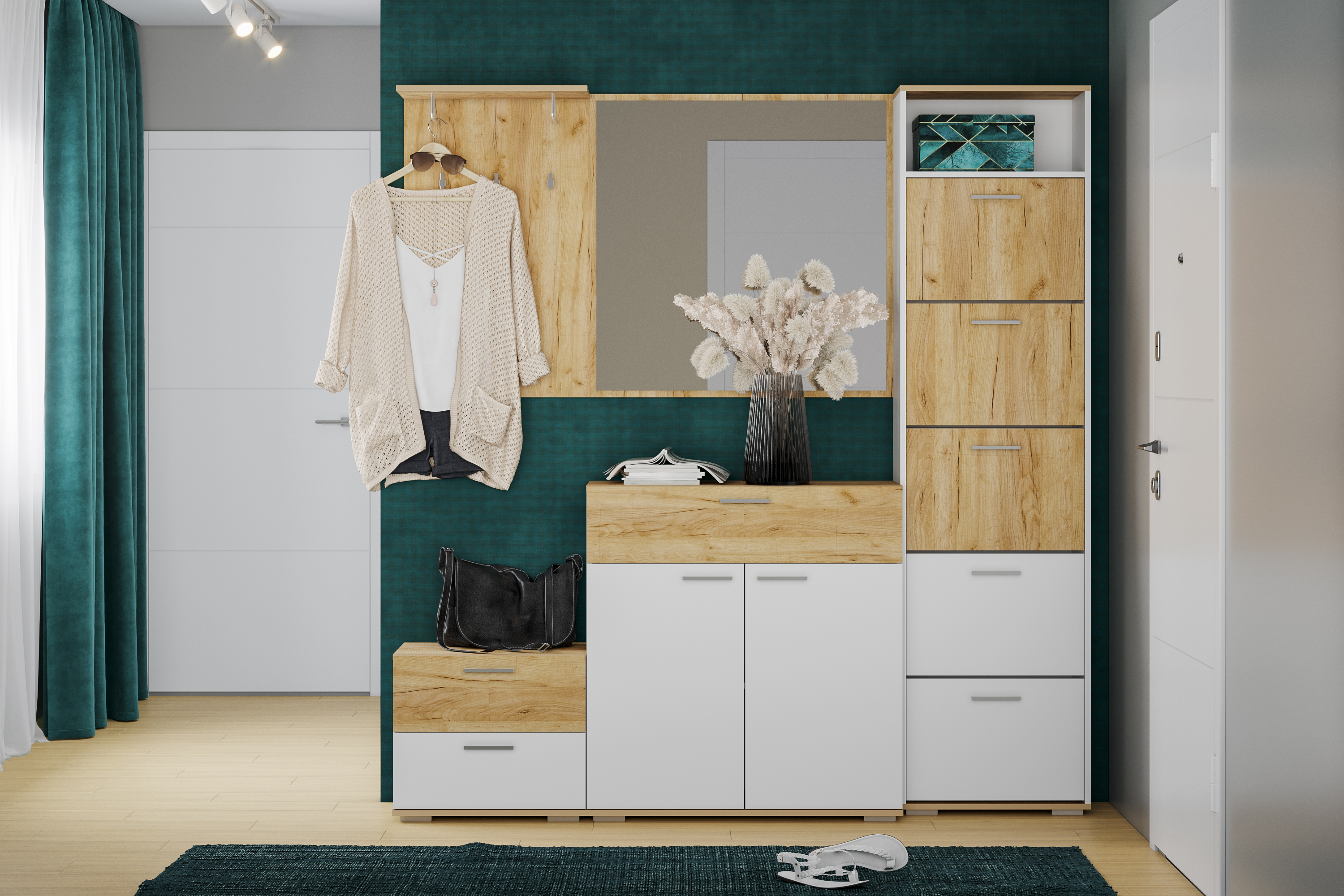 Вешалка навесная в прихожую Юнона дуб белый CRAFT, серый шифер