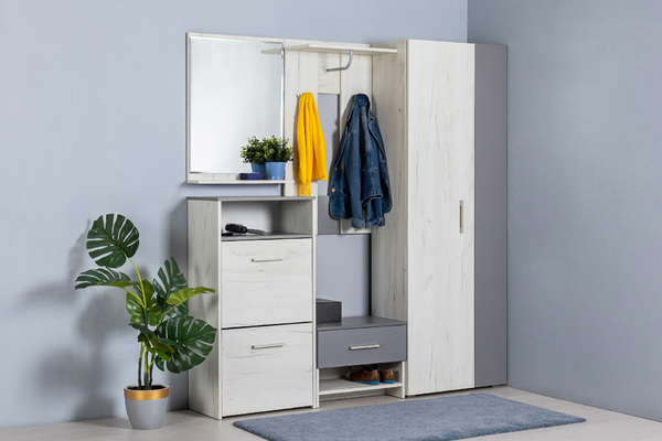Тумба для обуви в прихожую Юнона дуб белый CRAFT, серый шифер